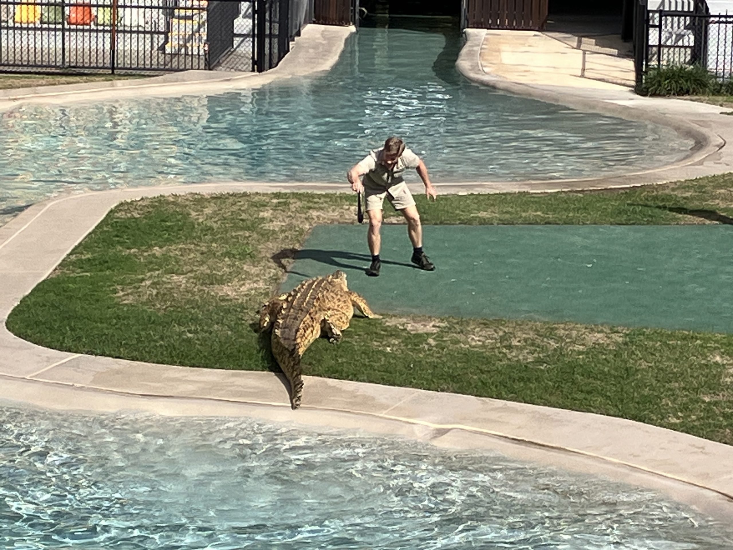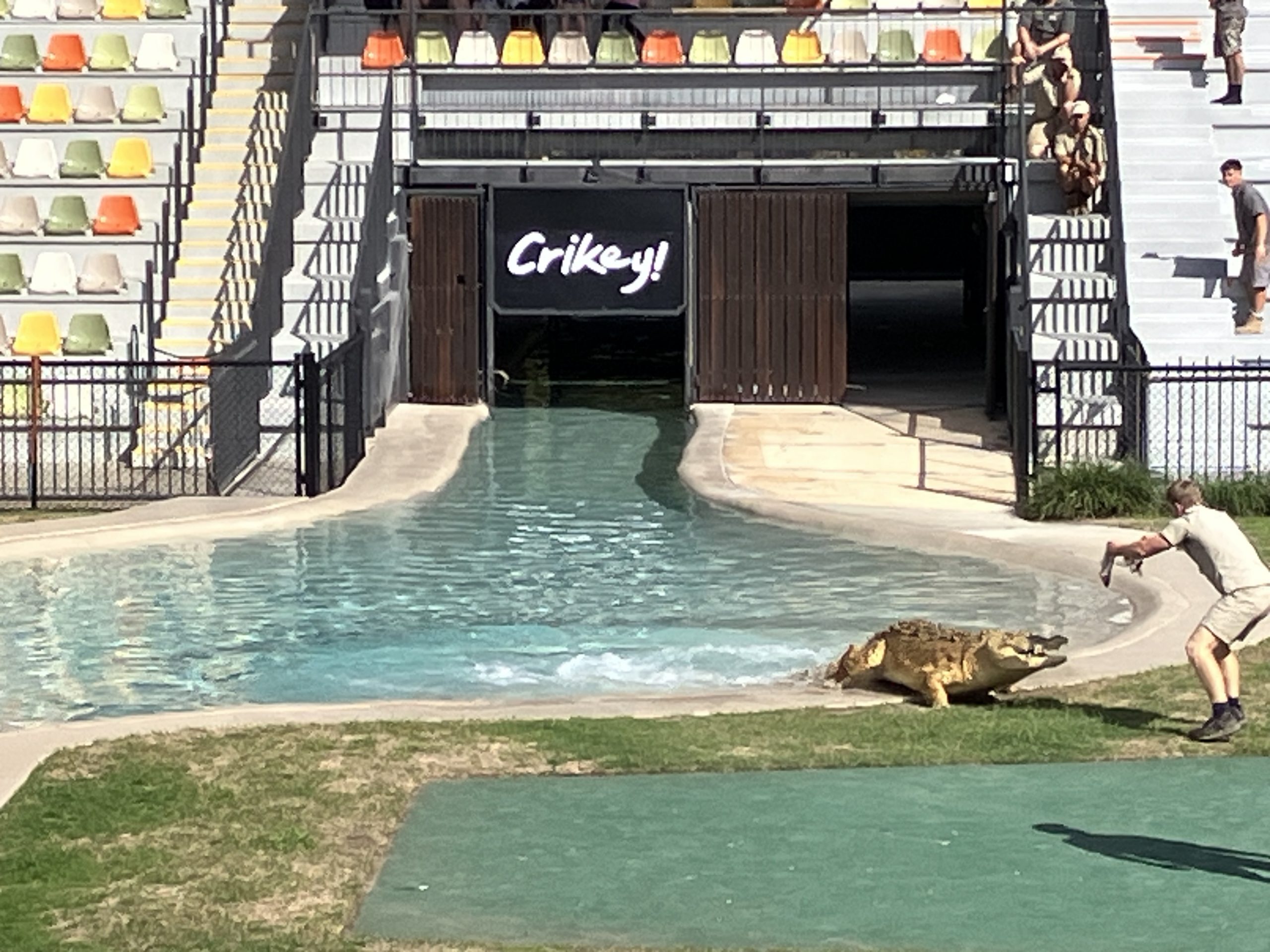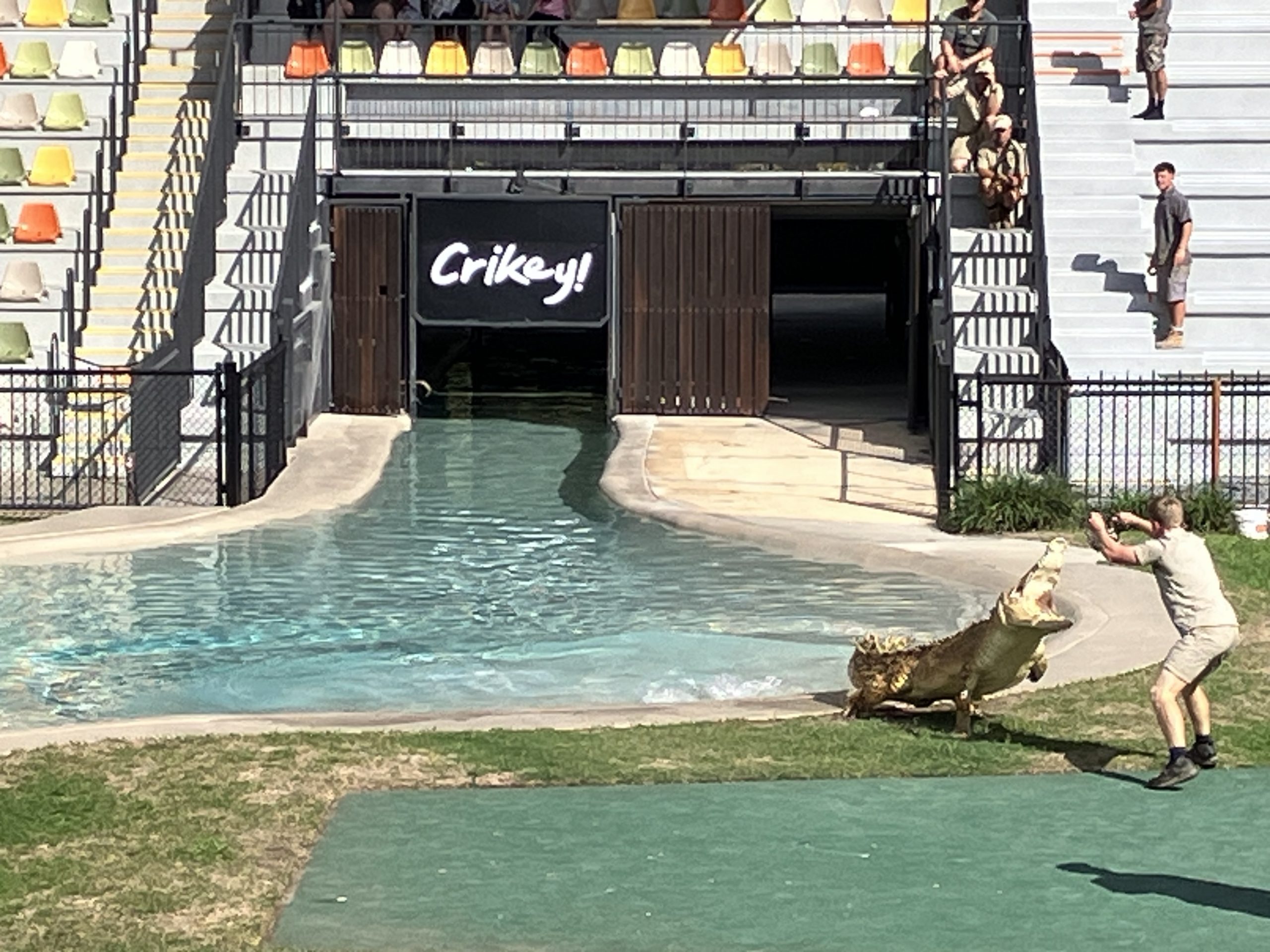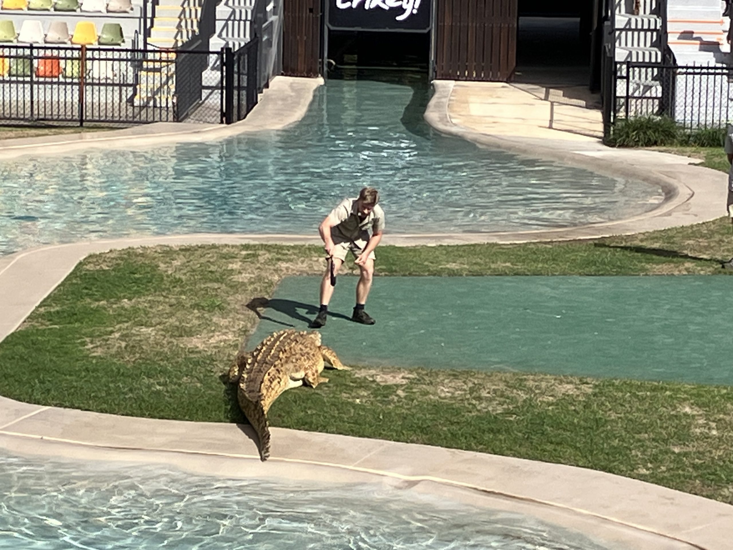 We visited the Crocoseum where Robert Irwin demonstrated and explained to us how Crocodiles behave and how to keep them and ourselves safe.
