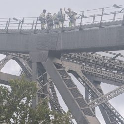 We had to wear jumpsuits and harnesses and be connected to a line while we climbed the steps to 80m.