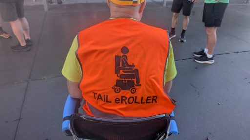Rory and his v1000 shirt got a mention during the run brief which Rory still finds very odd. A quick stroll/roll to the start line and we were off. The course is an almost flat “T” shaped double out and back along the edge of the lake. As we were on Tail duties, Rory had yet another custom hi-viz top