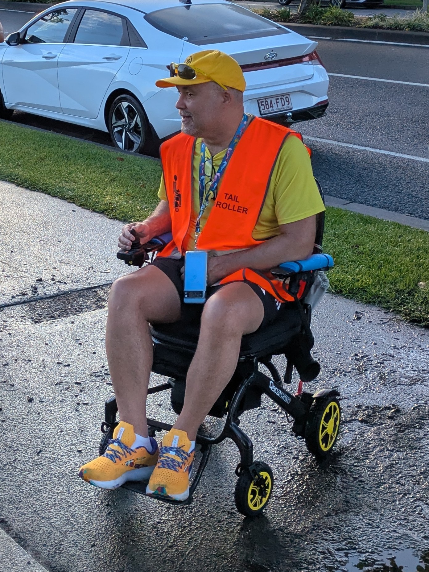 Rory and his v1000 shirt got a mention during the run brief which Rory still finds very odd. A quick stroll/roll to the start line and we were off. The course is an almost flat “T” shaped double out and back along the edge of the lake. As we were on Tail duties, Rory had yet another custom hi-viz top